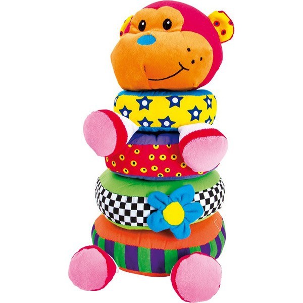 Cette peluche d'éveil est un singe doté d'anneaux, que l'enfant doit empilez, emboîter c'est un eu dont votre enfant ne se lassera pas.