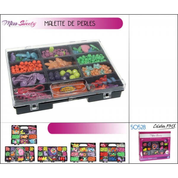 Cette boîte de perles en plastique est dotée d'un couvercle qui se ferme par un système de sécurité, de 11 cases contenant au total 154 perles et accessoires pour s'amuser à créer le plus beaux bijoux, selon son imagination.
